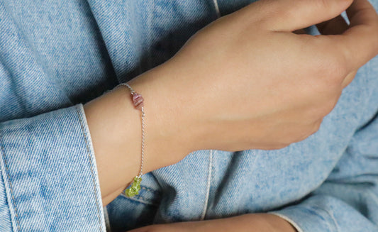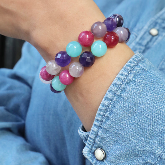 Pink Jade, Rose Quartz, & Colorful Agate Stones Relief Bracelets