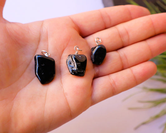 Green & Black Tourmaline Heart Strenghthening & Energy Pendants