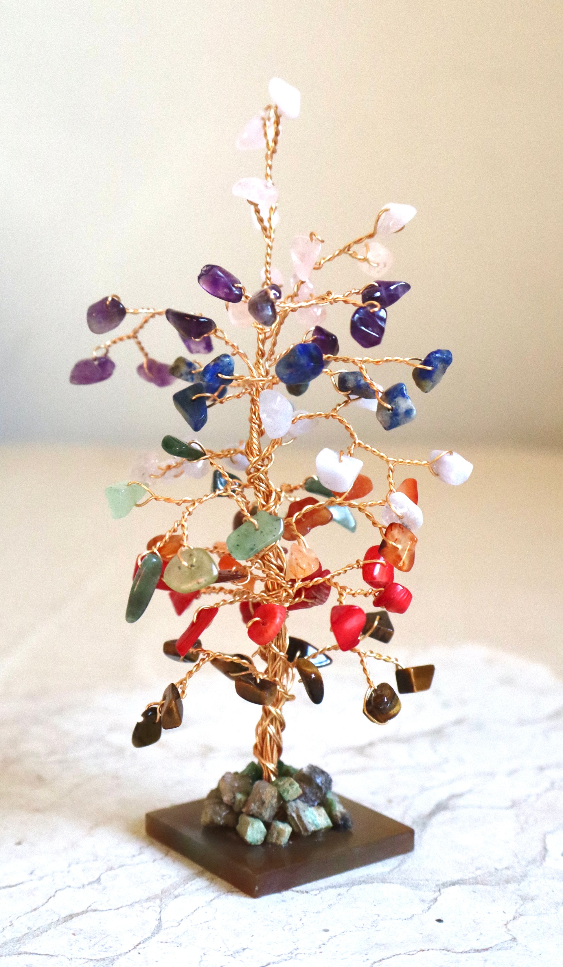 This Tree of Life not only visually represents the chakras but also embodies the healing properties of the gemstones, promoting harmony and balance around the environment you place it in.