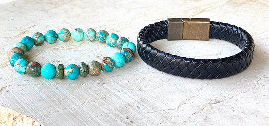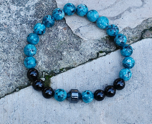 Ocean Blue Feldspar Jasper, Hematite, & Black Onyx Emotional Healing and Balance Men Bracelet
