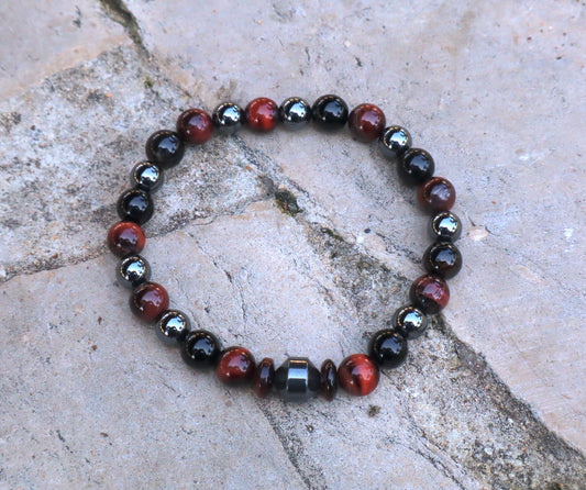 Red Tiger’s Eye, Hematite, & Black Onyx Power & Positivity Bracelet