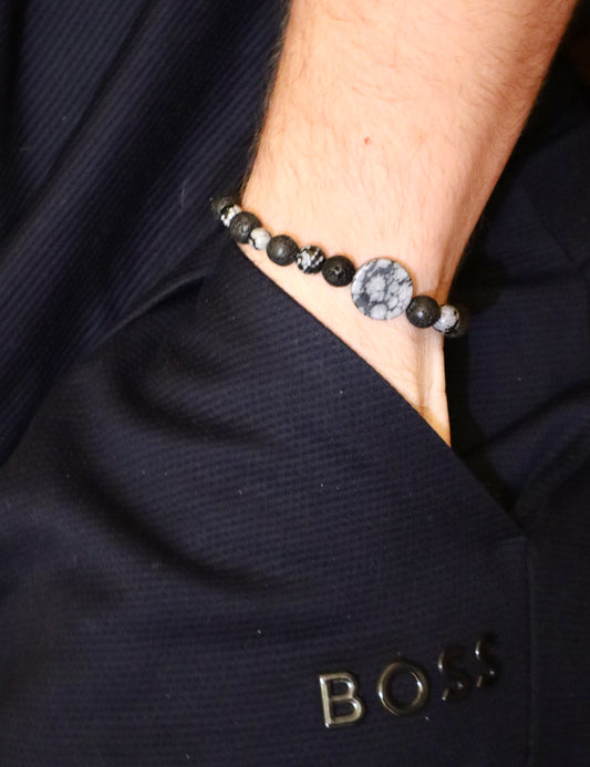 Snowflake Obsidian & Lava Stones Protection & Strength Men Bracelet