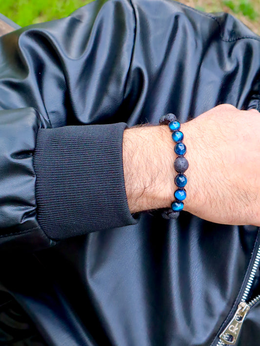 Blue Tiger’s Eye & Lava Stones Strength & Clarity Bracelet