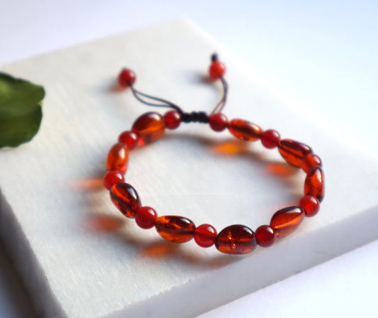 Russian Amber & Carnelian Body Pain Relief & Positivity Bracelet