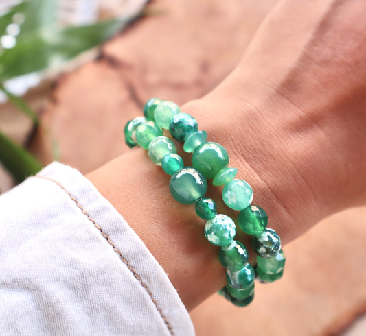 Orca Green Agate, Green Agate, & Jade Personal Growth & Stability Bracelets
