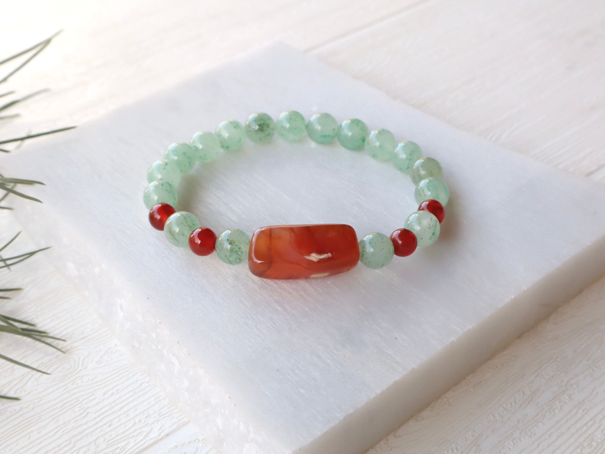 Experience harmony and vitality with this Jade & Carnelian/Agate Bracelet, a beautiful blend of calming and energizing gemstones. Handcrafted with intention, this bracelet balances your mind, body, while adding a striking touch to your style.