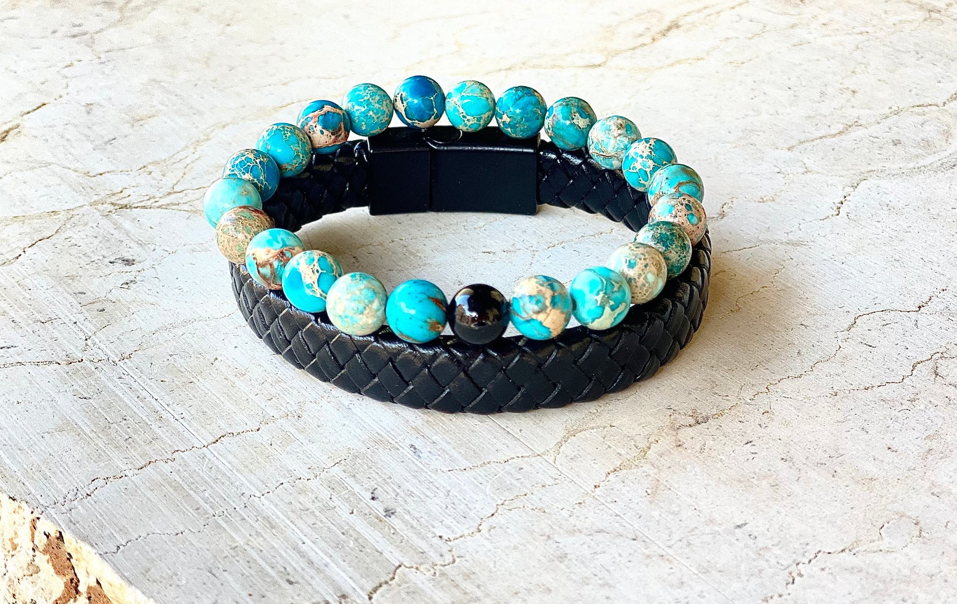 Elevate your everyday style with this bold and meaningful piece. Handcrafted with natural Nichabouri Turquoise and Black Onyx stones, this bracelet is more than just an accessory — it’s a statement of strength, balance, and purpose.