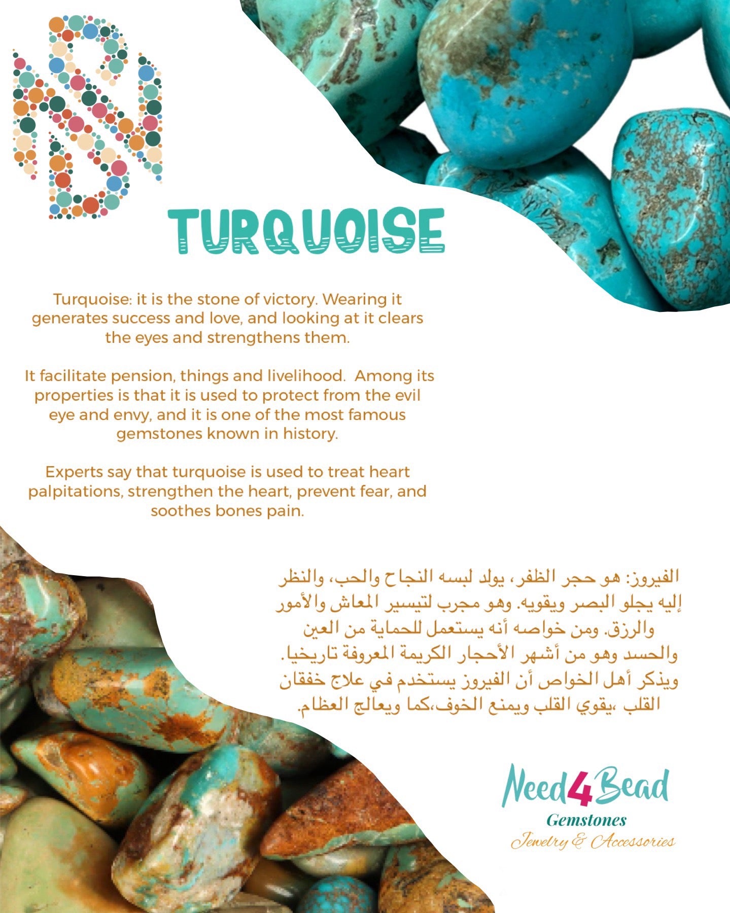 - Turquoise – A powerful protection and luck stone. Encourages confidence, communication, and inner peace.