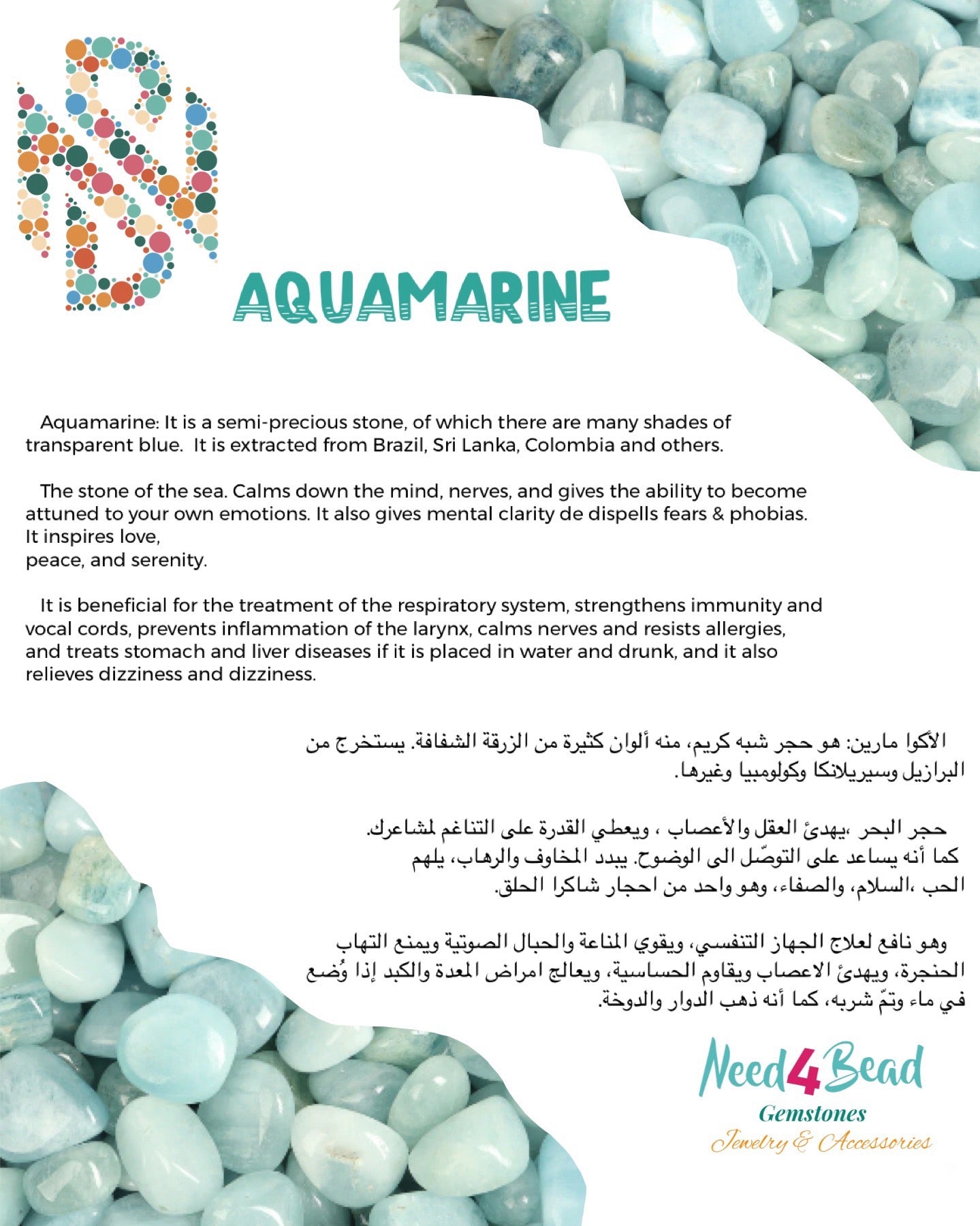 - Aquamarine – Known for its soothing, ocean-like energy. Helps relieve stress, enhances clarity, and supports truthful expression.